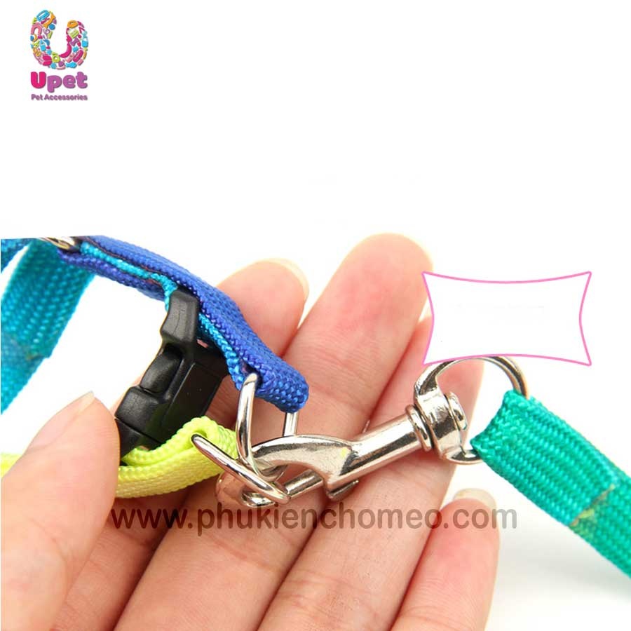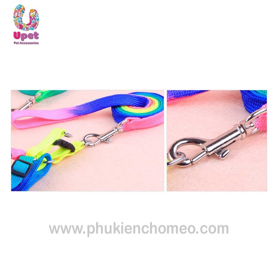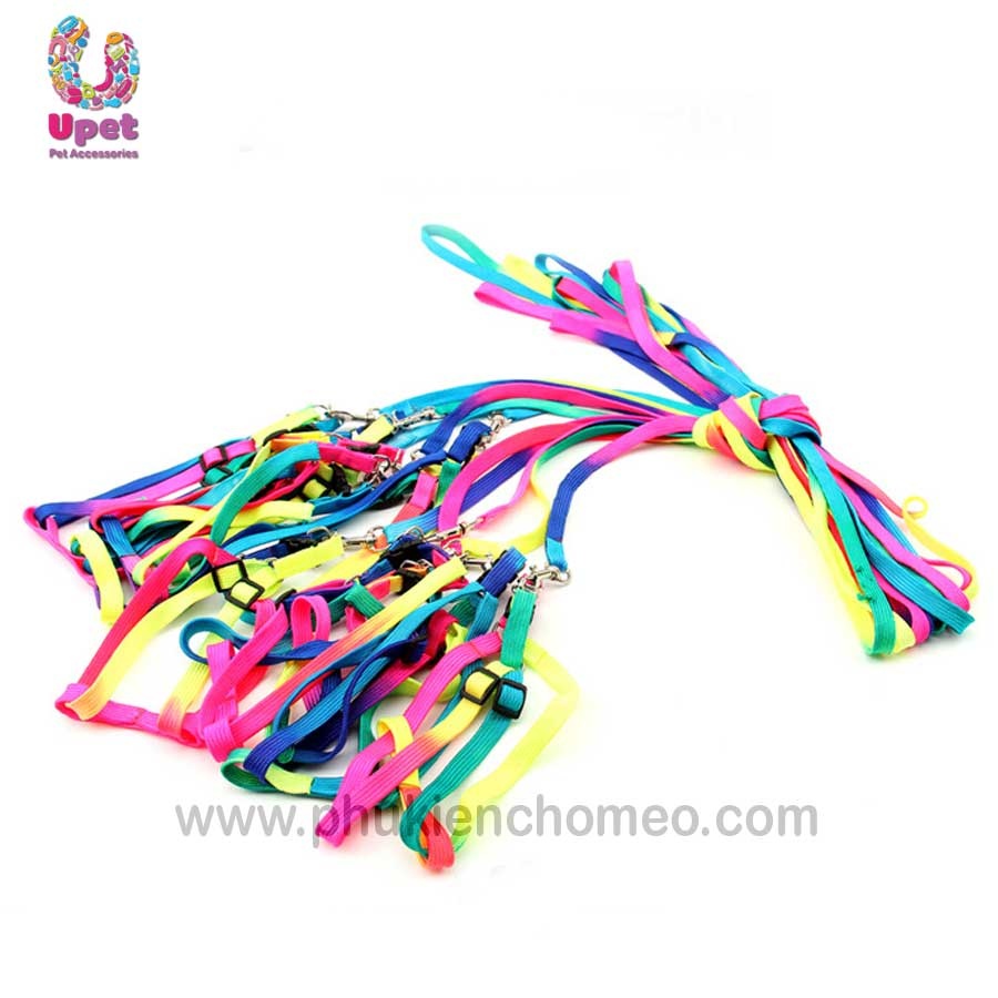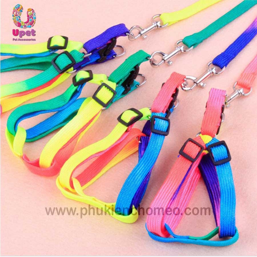 Bộ dây dắt kèm đai yên ngựa làm từ chất liệu vải dù pha nilon với mầu sắc cầu vồng rực rỡ, thích hợp sử dụng cho mèo và các giống chó nhỏ