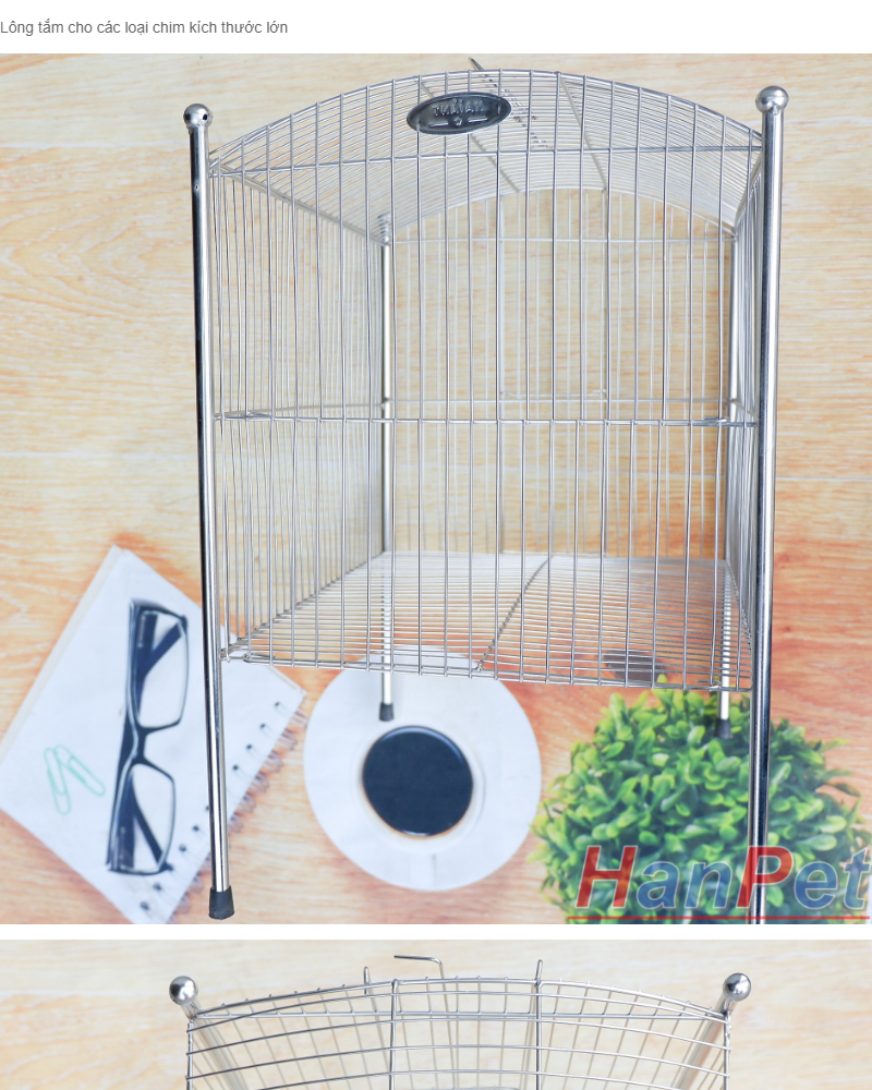 Lồng tắm chim lớn dành cho chim Khướu, Họa my, Chào mào, Chòe - Lồng tắm lớn 100% inox không gỉ sét (Hanpet longtam2) chuồng chim / lồng tắm họa my/ lồng tắm chào mào / lồng tắm chòe