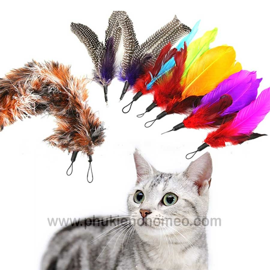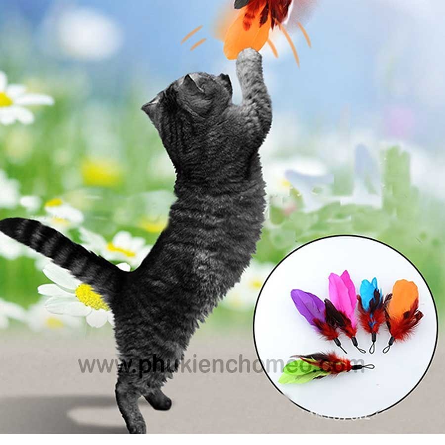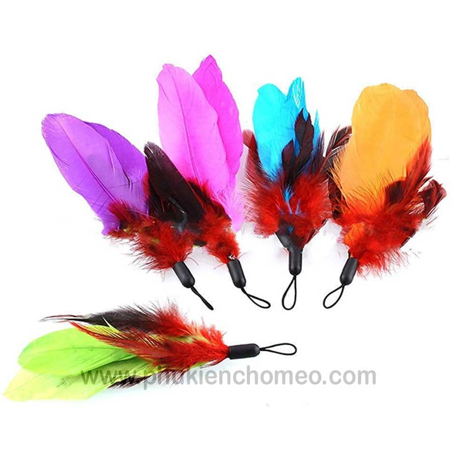 Mồi câu mèo với thiết kế lông vũ màu sắc bắt mắt, tạo hứng thú chơi cho các bé mèo.
