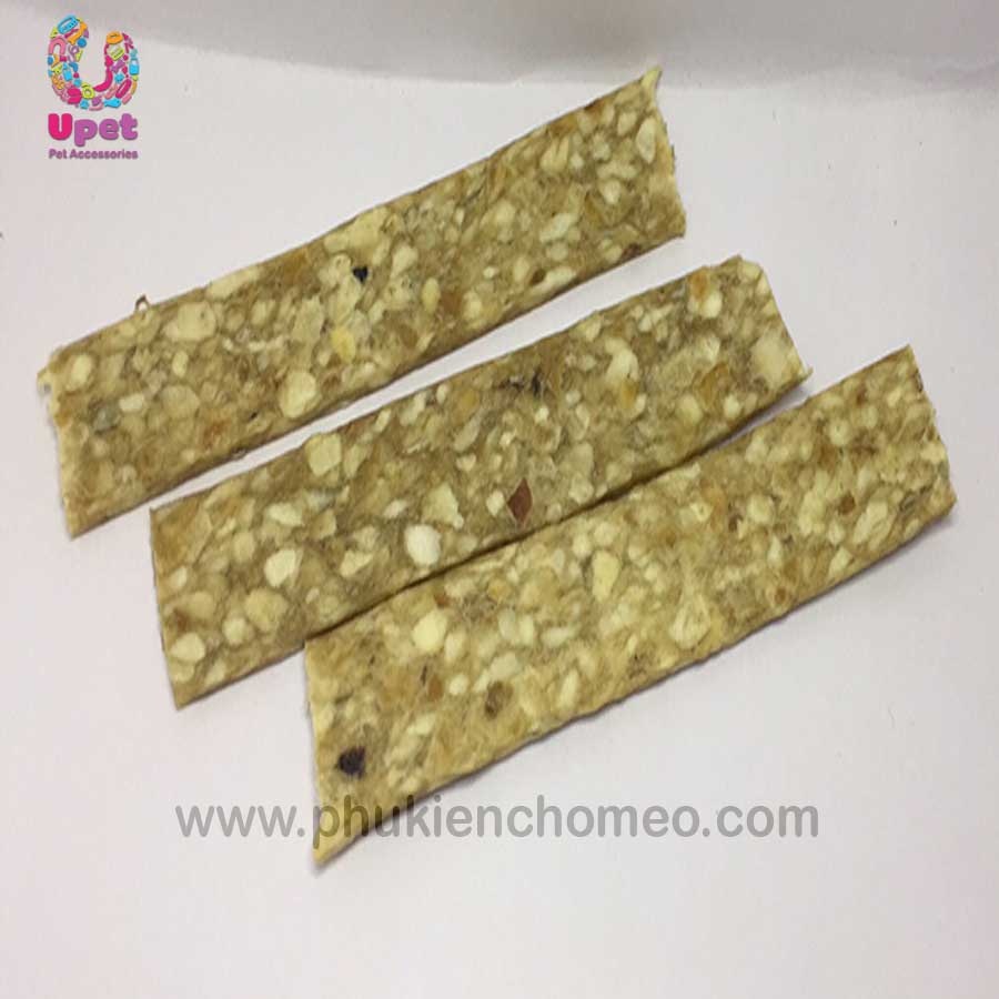 Sản phẩm sử dụng nguyên liệu da bò tự nhiên, dễ tiêu hóa, ít chất béo, khả năng khử trừ men răng cho thú cưng, m hôi miệng, phòng các bệnh về răng miệng.